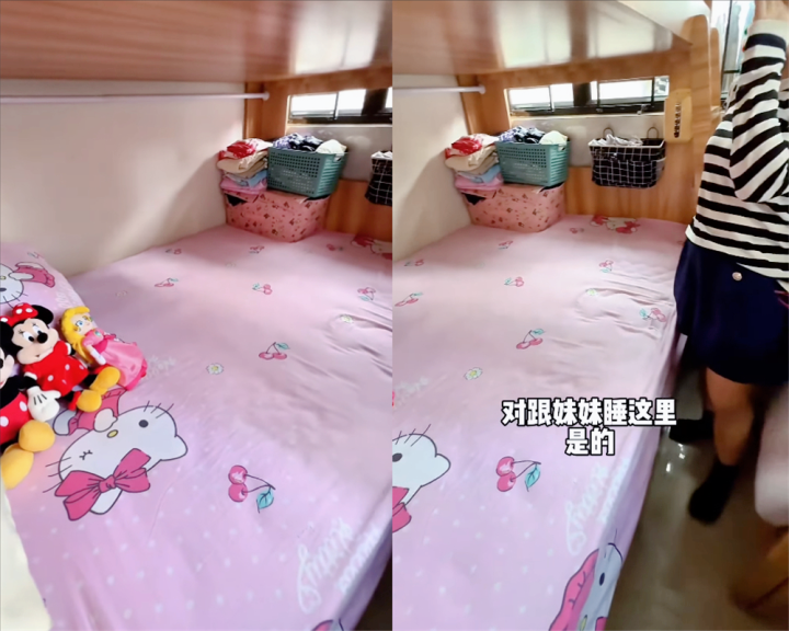 ▲下铺睡妈妈和妹妹