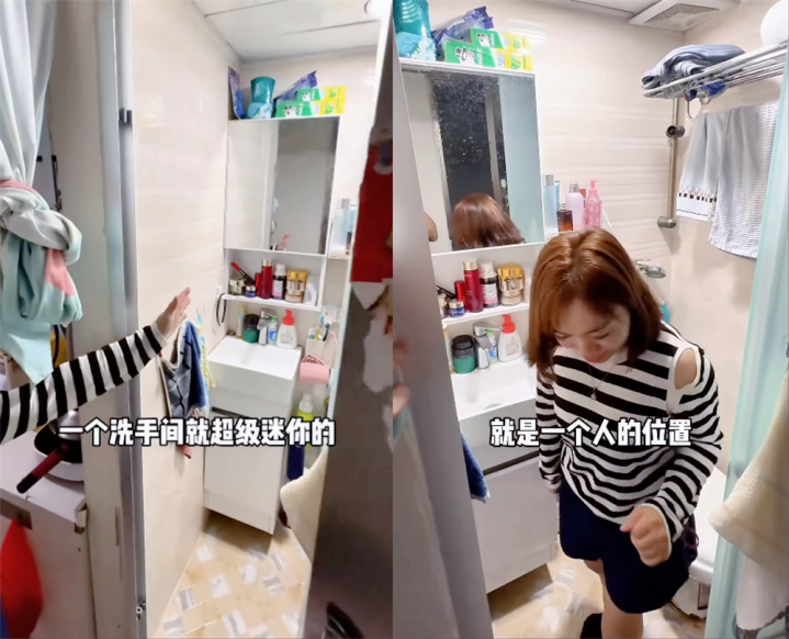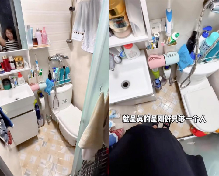 而且卫生间的空间也非常小,只有1 平方米左右,因此只能容纳一个人进去。
